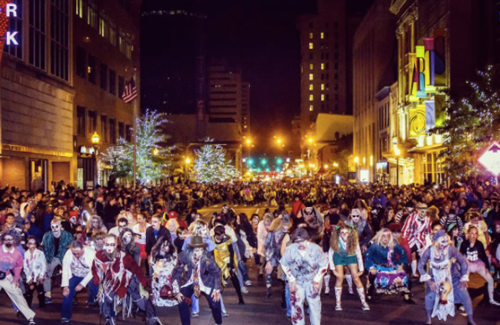 Lexington's Thriller and Halloween Parade. In an effort recreate Michael Jackson's 'Thriller,' Lexington hosts the spookiest annual Halloween parade you'll see with squinted eyes. Even named a top 10 Halloween destination by USA Today, our own local citizens have been rehearsing for weeks to perform for onlookers and enthusiasts alike. Mostly brought to you by Lexington Parks & Recreation, Mecca Live Studio, and WRFL, this is one local event you don't want to miss. You can mark your calendars this year for Sunday, Oct. 29, 2017. The main Thriller Parade begins at 8:30 p.m. with a surplus of festive events before it. The parade starts at Quality and Main streets and proceeds down Main Street, ending at Mill Street.Sunday, Oct. 29, 2017. The main Thriller Parade begins at 8:30 p.m. with a surplus of festive events before it. The parade starts at Quality and Main streets and proceeds down Main Street, ending at Mill Street.
