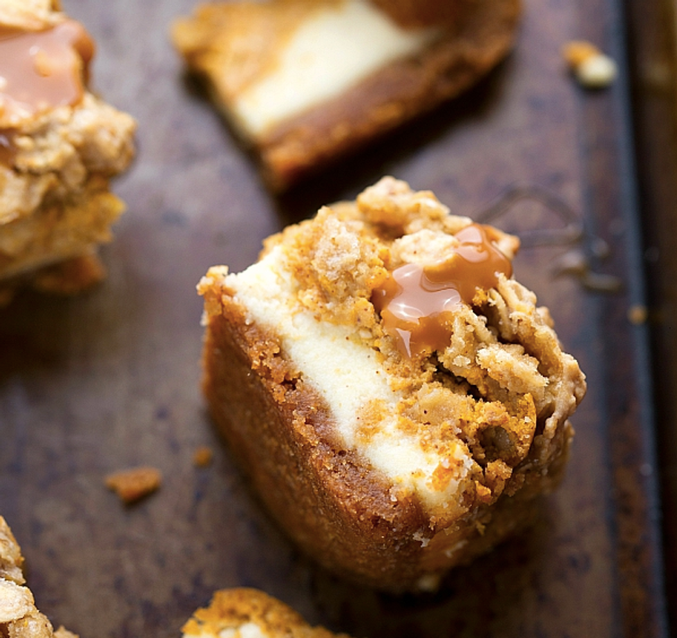 Fun fall foods like Pumpkin Caramel Cheesecake Bars with a Streusel Topping. Seeing as that you can't start any season without making at least one bad decision, let this be the first five. Layers of cheesecake, a delicious cinnamon graham cracker crust, topped with a streusel and caramel sauce, oh my. Grab your favorite people, your most trustworthy stove, your strongest wrist and get whipping.