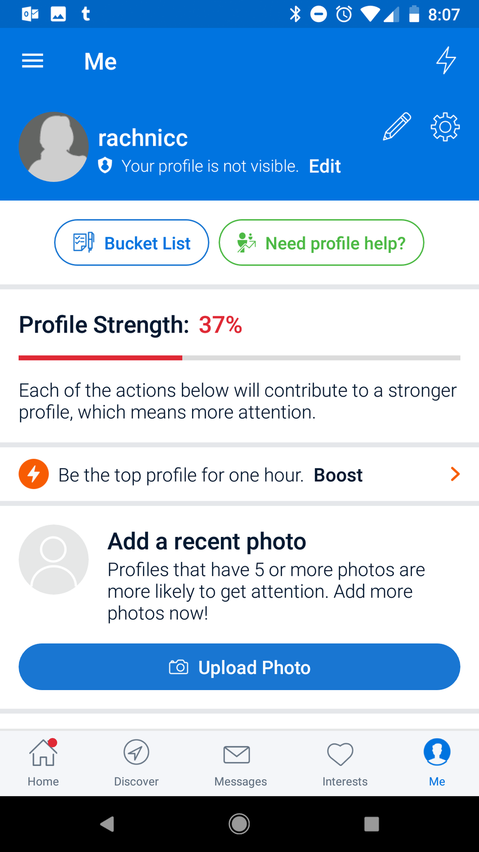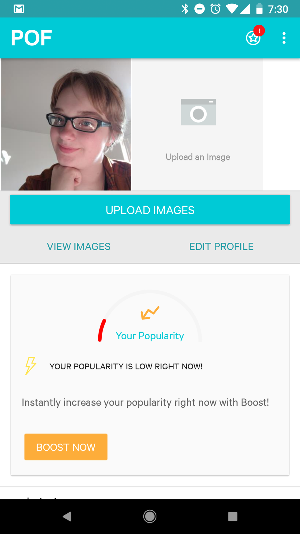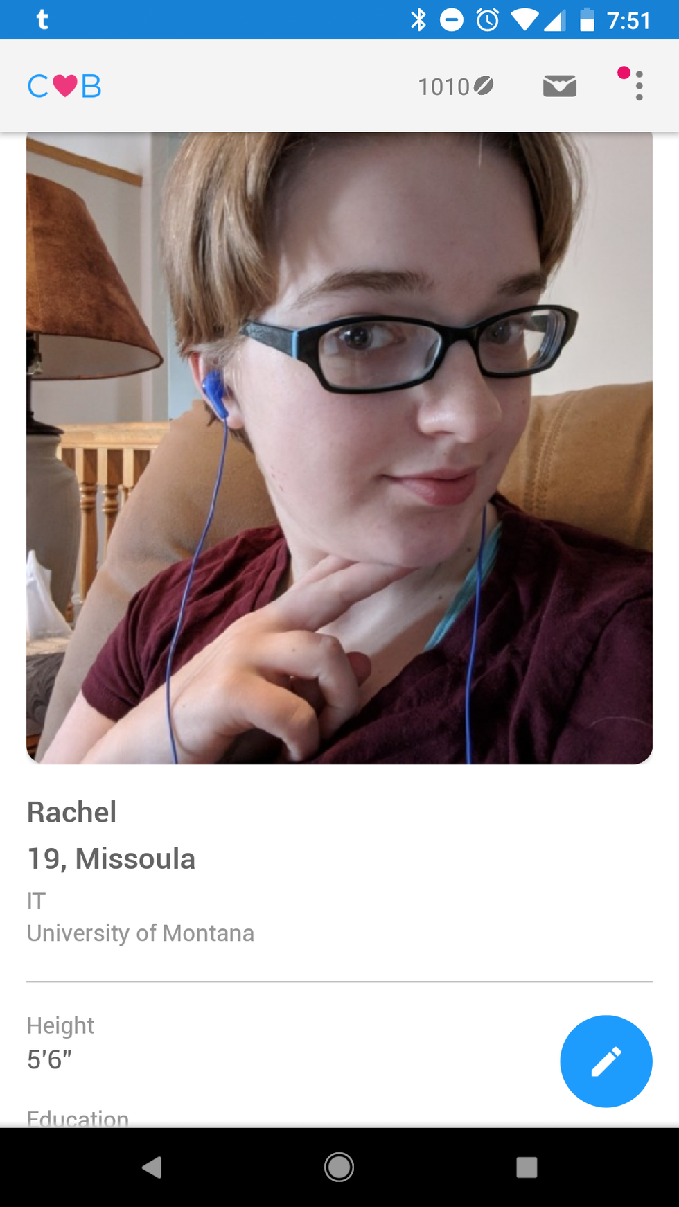 You'll notice this doesn't have a picture of my Tinder. I literally deleted it so fast that I didn't remember to get a screenshot. But it was one of the editors' choice dating apps on the Google Play Store, so I decided I had to give it a shot (and that once I did, there should be nowhere to go but up).