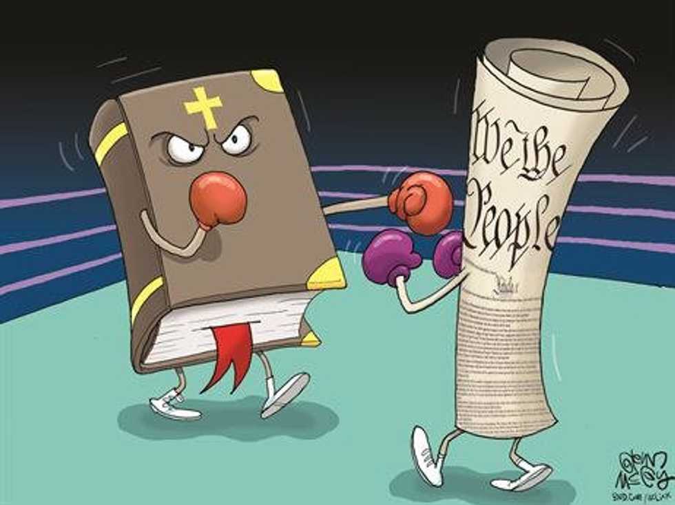 What sparked this article comes from the idea that there is a war on Christianity and our rights as Christians. This seems absolutely ridiculous to me. No rights have been taken away from me nor any Christian when homosexuals gained the right to marry, but a whole group of people gained rights. You can in fact pray in school, it just can't be forced on students or lead by a teacher. A Private school can do both those things because they do not function off of public money. The enforcement of equality doesn't mean there is a war on us.