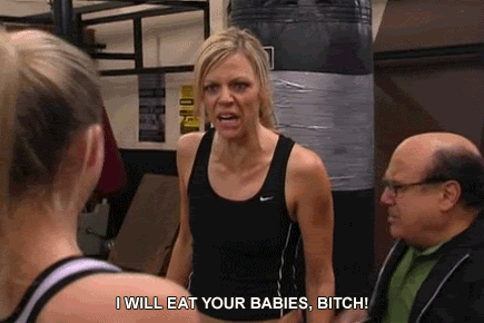 Sweet Dee has another zinger to throw at ‘em: “I will eat your babies, bitch!”