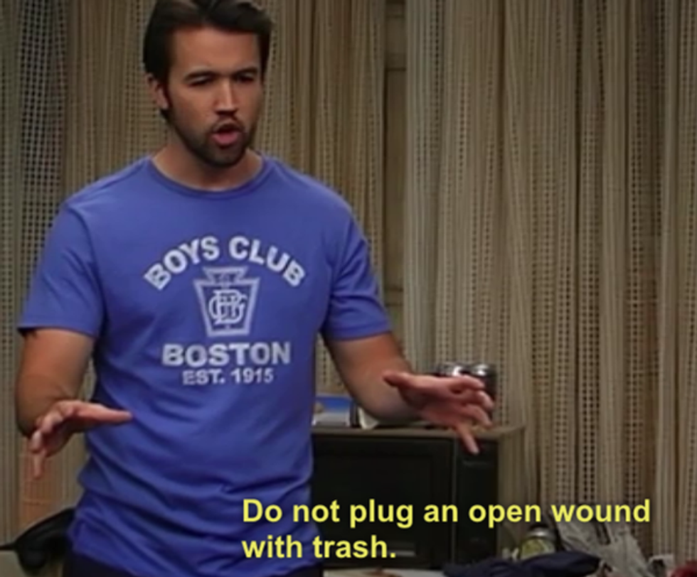 Mac’s got your back: “Do not plug an open wound with trash.”