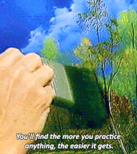 Bob knew that you can't paint like a professional painter on your first try. You had to practice several times and make several "happy little accidents." It gets easier with practice.