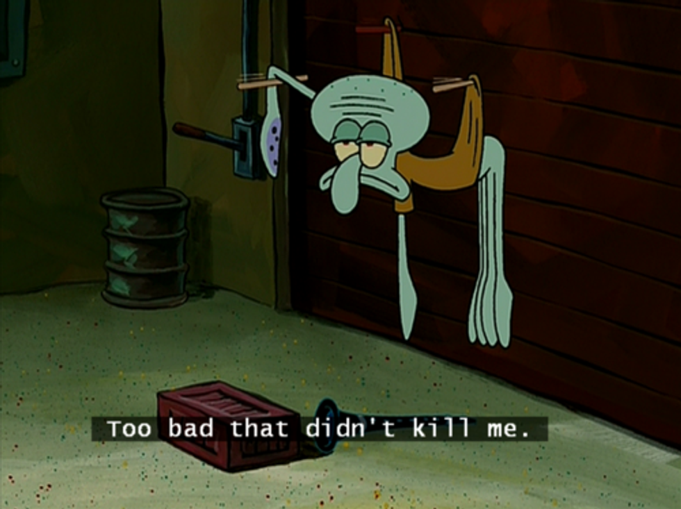 College isn't always fun and games. Sometimes it can be stressful and can put a person in a bit of a funk. In the beloved television show "SpongeBob SquarePants," Squidward Tentacles has always been seemingly portrayed as a pessimistic, angry creature who never seemed to be in a good mood. However, as I have grown older, I have began to realize how much college students can actually relate to him. Here are 11 ways that Squidward has highlighted our occasional feelings toward college.