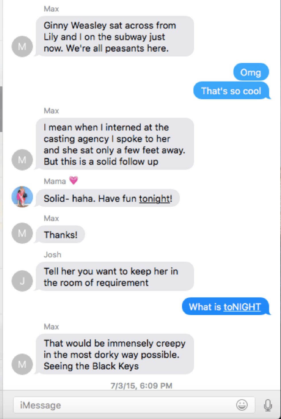 Although my twenty-five-year-old brother is guilty of sending this text, he is also guilty of forcing his girlfriend to enter in the Hamilton lottery every weekend since then. Perhaps he would have won if he paid attention a little more.