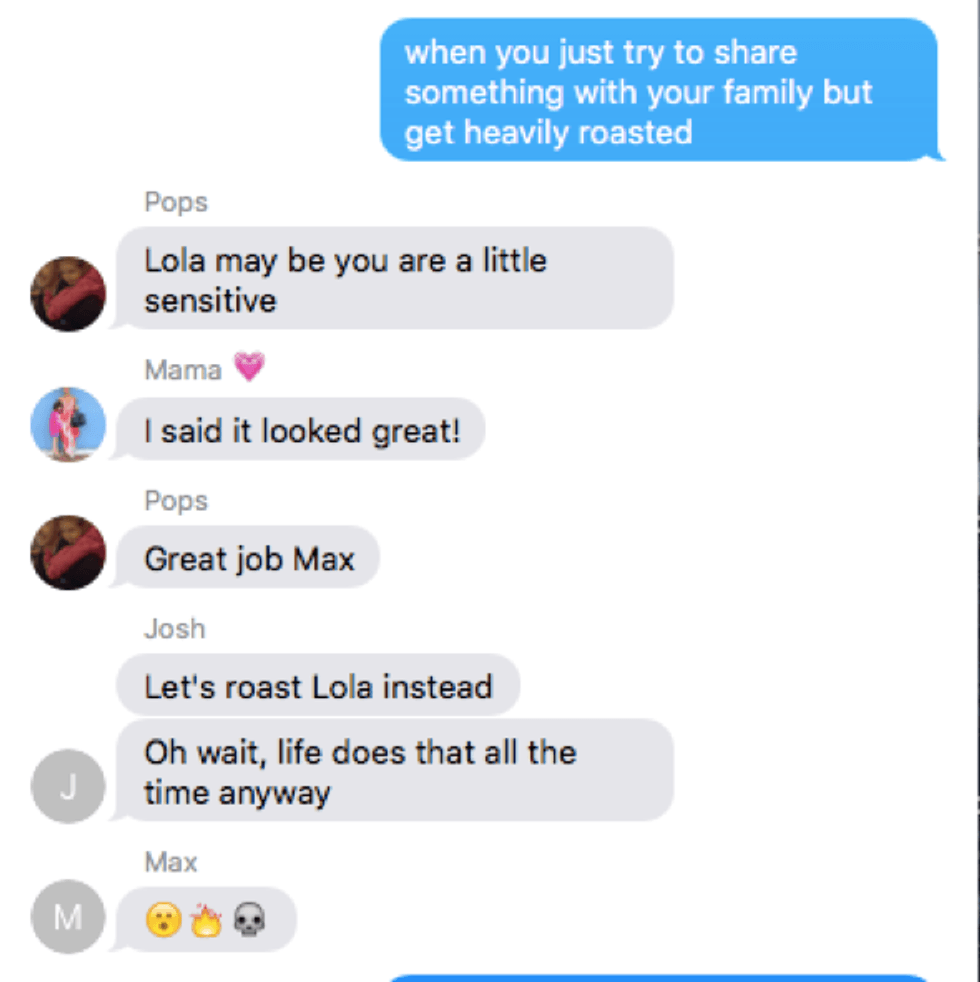 My younger sister’s response to my prom photos. At least she’s open-minded.