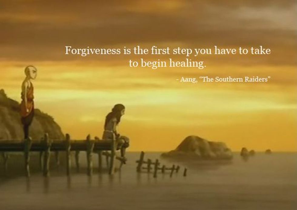 In this episode of Avatar: The Last Airbender, Katara is really struggling to forgive people. She can't forgive Zuko, she's angry, she's hurt, and she's putting all her hurt and anger on to everyone else. Eventually, everyone realizes it's not Zuko she's having a hard time forgiving, it's the man that killed her mother. Katara wants revenge, but Aang tries to convince her to forgive. We all know that forgiveness can be a hard and difficult process, but in the end, we are all better off with forgiveness.