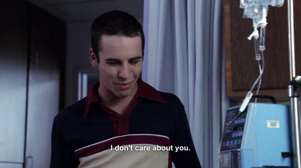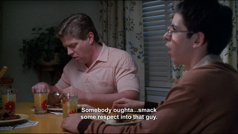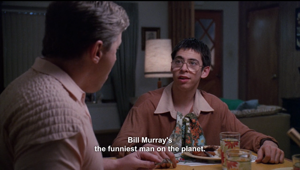 This is what I learned most from Bill. He knows what makes him feel good, and he does it without caring what people think. This is a scene of Bill having what seems to be the time of his life while eating a grilled cheese and watching TV. I think about this scene every time I come home from school and am alone. It’s very special to me.