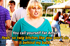 Put Fat Amy down for cardio? Think again sister. Fat Amy never lets anyone tell her what to do. Don’t date a treblemaker? Ha. Amy refuses to listen to people who tell her what to do and how to do it. Amy went rogue during one of their performances, which helped them move onto the next round. Fat Amy knows what she wants and with her confidence she never lets anyone tell her what to do.