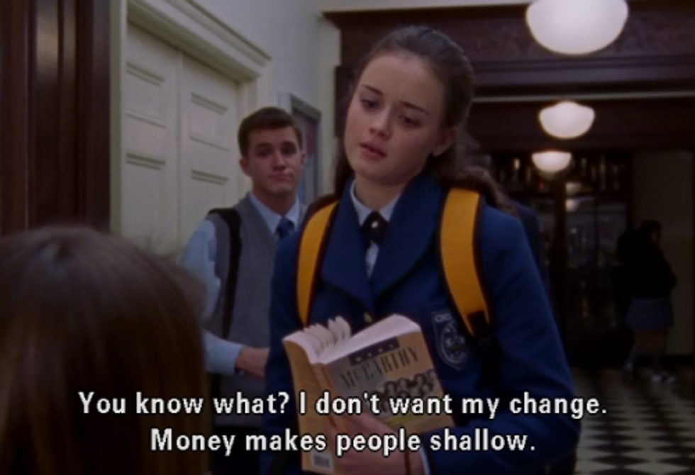 Lorelai had every chance possible at having all the money she could imagine for herself. Her family was full of wealth, yet her parents were never always happy with the "finer things in life." Occasionally we would even see Emily Gilmore enjoying the simple things in life (dinner with her daughter and food court food). Just because you end up with money, doesn't mean that'll help with your problems.