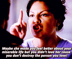“You didn’t love her. You just didn’t want to be alone. Or maybe, maybe she was good for your ego or maybe she made you feel better about your miserable life, but you didn’t’ love her because you don’t destroy the person that you love.” -- Callie
