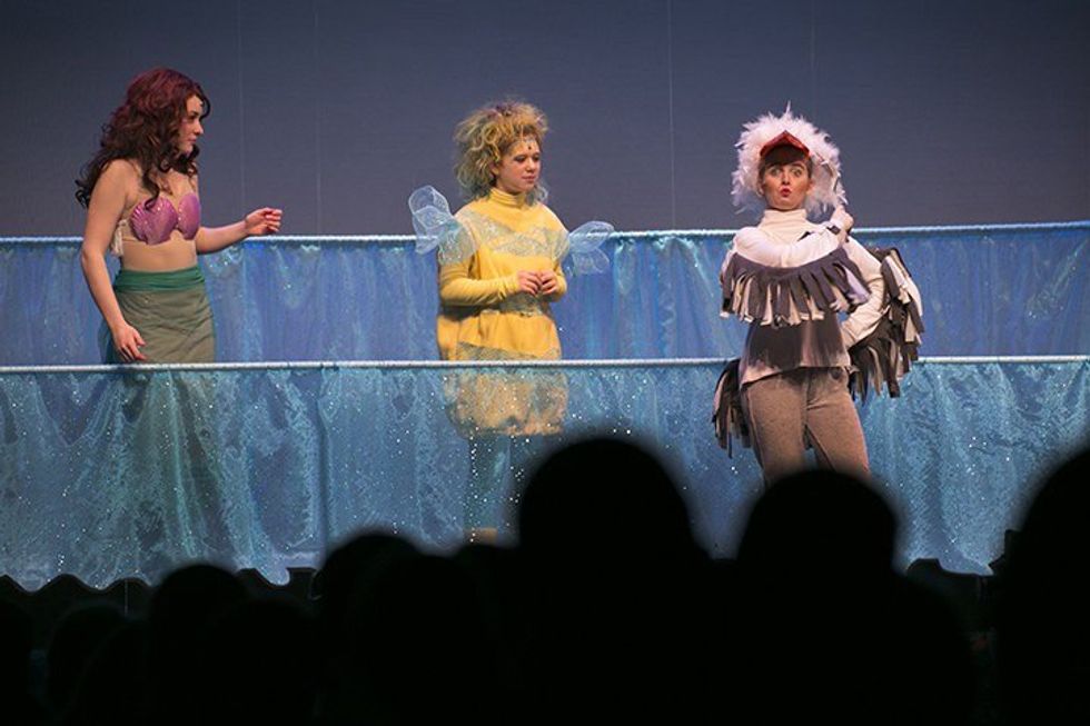 In the midst of all my seriousness about college and my future career, I was also playing Scuttle the Seagull in my school’s production of The Little Mermaid. As soon as the cast list had gone up, I was extremely excited for the chance to push myself. I had never had a comedic role before. However, it took a lot longer for me to fall in love with Scuttle than it did with other characters I’d played in the past. Instead of delivering emotional dialogue or belting power ballads, I spent rehearsal hours squawking, flapping my wings, and speaking nonsensical terms such as “stupelicious”, “snarfblatt”, and “dinglehopper”. Scuttle required me to abandon so much of what my acting training had been. To me, acting was the art of replicating human behavior as honestly and authentically as possible. And there I was, playing a talking seagull. This was definitely not what I would’ve hoped for my last high school role. I was used to being serious.