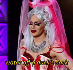 Something that season five winner, Jinx Monsoon said to herself before every critique from the judges. Basically, just let some things roll off of your mind like water off a duck's back.