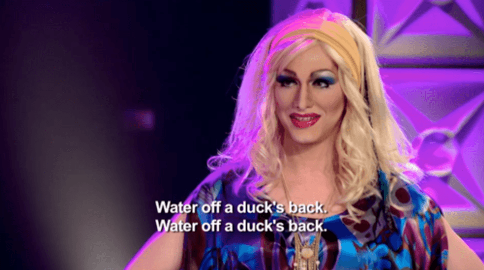 Perhaps one of the best lessons to be learned from "RPDR," Jinx Monsoon brought us this mantra. For those of you who aren't quite sure what it means? Well, it really depends on you. For example, if you're working retail and a customer is reading you for filth, all you have to do is remind yourself it's just water off a duck's back.