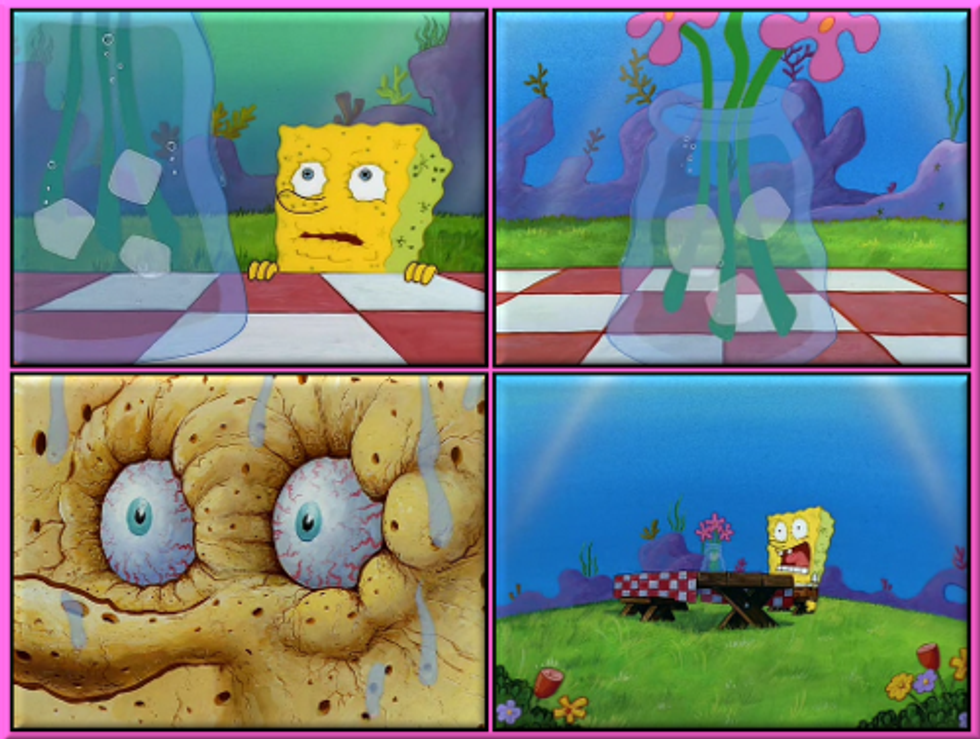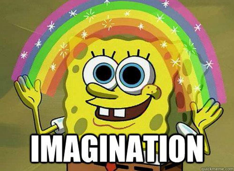 SpongeBob: Squidward, we don't need television. Not as long as we have our—(makes a rainbow with his hands)—imagination.