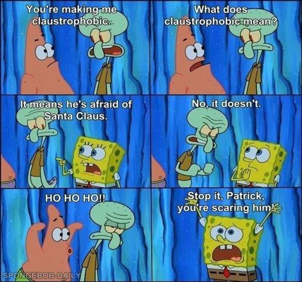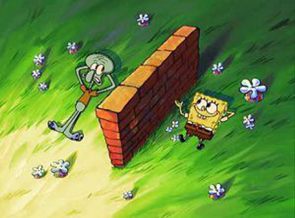 SpongeBob: Yeah, this is great, just the three of us. You, me, ...and this brick wall that you built between us.
