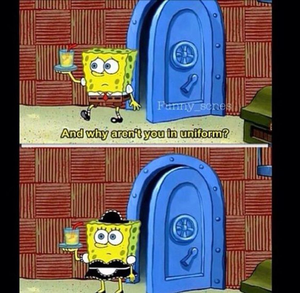 SpongeBob: I don't need it. I don't need it. I definitely don't need it... I NEEED IT!