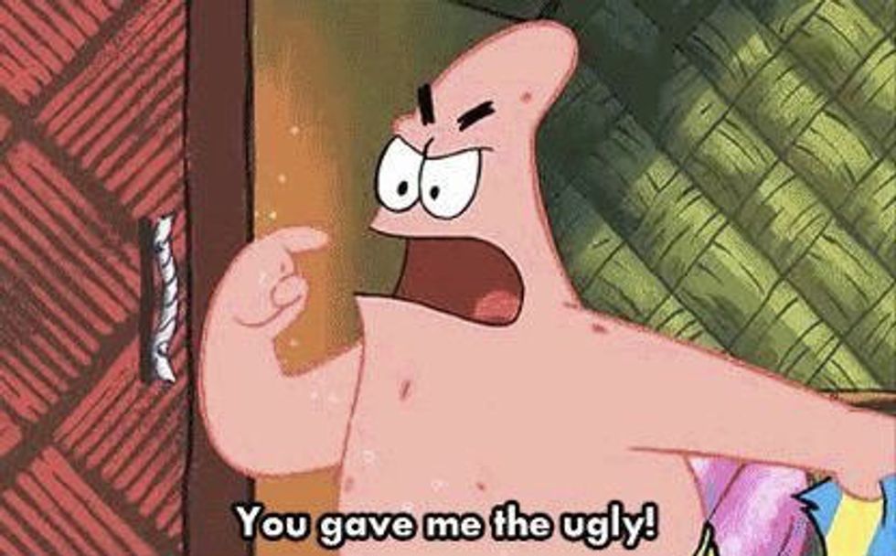 SpongeBob did not give Patrick "the ugly" and frankly, things happen. Don't get angry or blame people for something that's out of their hands.