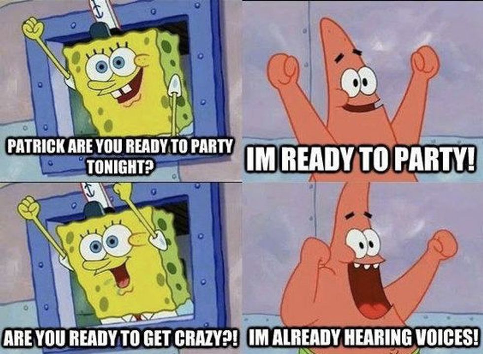 SpongeBob and Patrick may not have had the absolute best idea of fun that night but they knew when it was time to kick back, relax and have some fun (this is from the episode where they end up going on a panty raid with Mr. Krabs and they end up raiding the house of Mama Krabs... yikes!)
