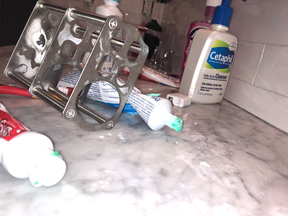 Secondly, if you left your toothbrush in there, forget about it. Throw it out because it’s either fallen on the floor or has accidentally been used by a young boy. At first, I wanted to kill them… But I realized it’s not worth trying, they’ll learn soon enough.