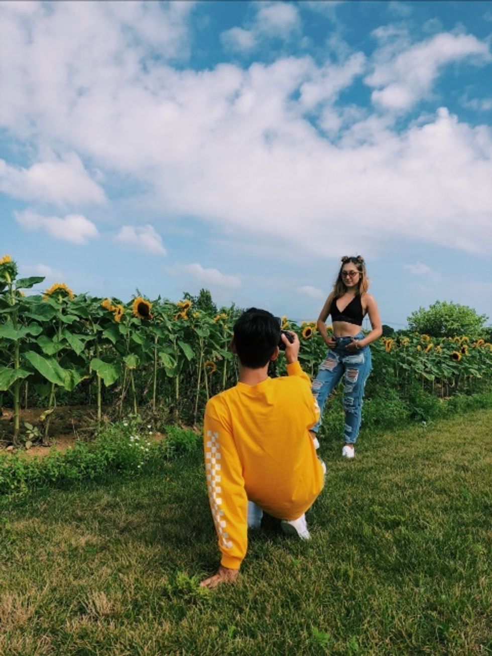 Keep in mind that we had been up and at 'em, driving around, since 9 AM. By this point, it was around 4 PM and we hadn't even taken a single picture yet. After clearing up a misunderstanding about picking sunflowers, the incredibly nice owner told us we were welcome to take all the pictures we wanted on the field and we got down to work.