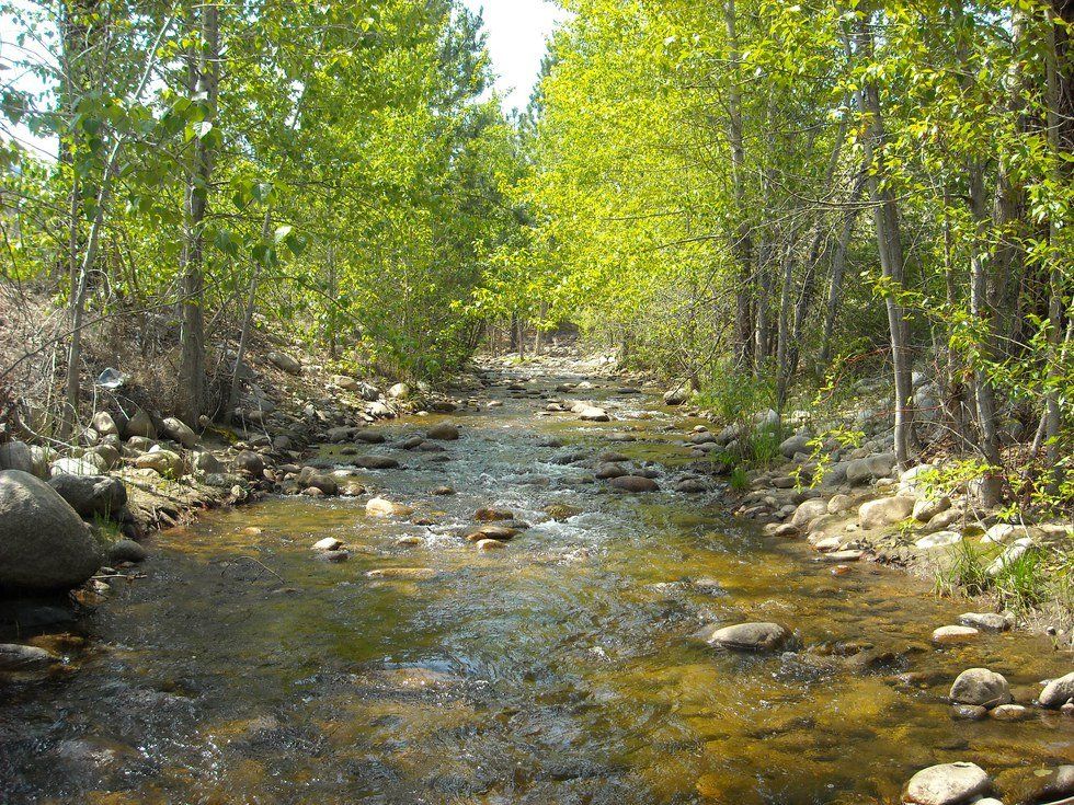 My high school always went on a week long retreat up in the Sequoias at the beginning of the year. The place is breathtaking and much of the day could be spent following trails around the lake and through the woods. One day, I was walking one of these trails by myself when I decided to venture off of it into the forest (don’t ever hike through the woods alone). I followed a creek until the rocks on the sides got too high, then I hiked in the creek itself. Barefoot with my sneakers slung over my shoulder, I soon discovered that the reddish algae on the creek bed was very slippery but still I pressed on. My destination made itself known to me the moment I came upon it. It was a large flat rock in the middle of the broadest part of the creek, a sunny oasis surrounded by birdsong and the buzzing of bees taking a drink. I lay there for hours, drying off and cataloging my cuts and bruises. Over the course of the week, I returned there many times, sometimes with a book or snack, always ready to sink into that little island's perfect tranquility. The next year, I set off to find my private oasis as soon as I could get away, but it was gone. The drought had lowered the water levels here too, not only was my island now just another part of the exposed creek bed, but there were lots of people there. This too, shall pass. My spot was gone, it exists now as a place of beauty in my memory.
