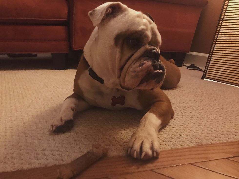 Dog intellegence is based off how easy a dog is trained; bulldogs are nowhere near the top of the charts. A bulldog's dopey behavior and stubborness lead to them needing to be told what to do multiple times before they actually do it. For example, my bulldog has learned many tricks through a routine: “sit, shake, lay down, roll over, treat." He also knows “spin," but for some reason can only spin counterclockwise, not the other way around.