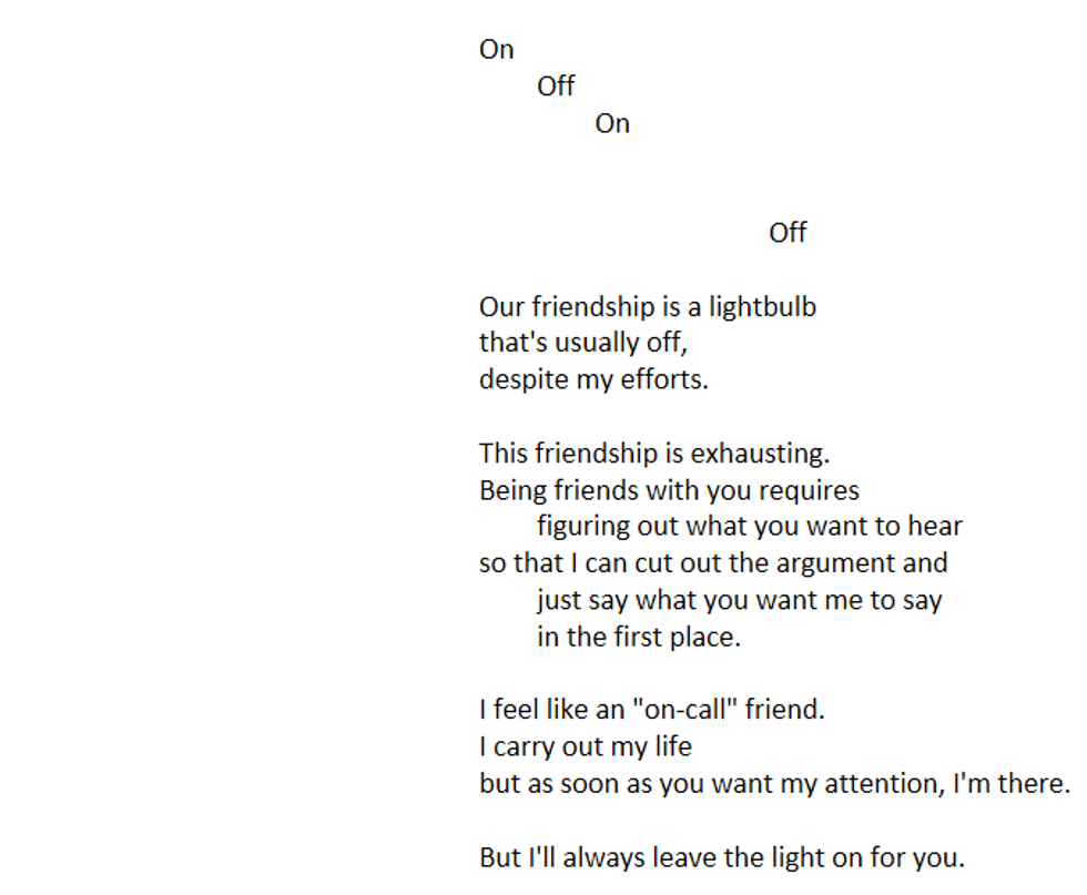 The song was sent to me late in the middle of the night. I was still awake enough to plug in my headphones and listen to it immediately. I always did this when my best friend sent me songs, never wasting a moment. She had sent a message with this one too, telling me it reminded her so much of both of us and what we have each been through in the past couple of months.