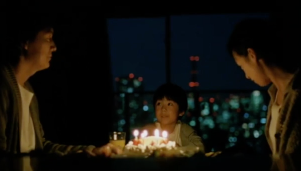 From this shocking news there is a sharp transition to a delighted Ryota and Midori celebrating Keita’s achievements in school. Their change in emotion disorients the audience. We come to realize they are in denial. Keita is the center of their world and here, the light from candles accentuates Keita’s importance in their hearts.