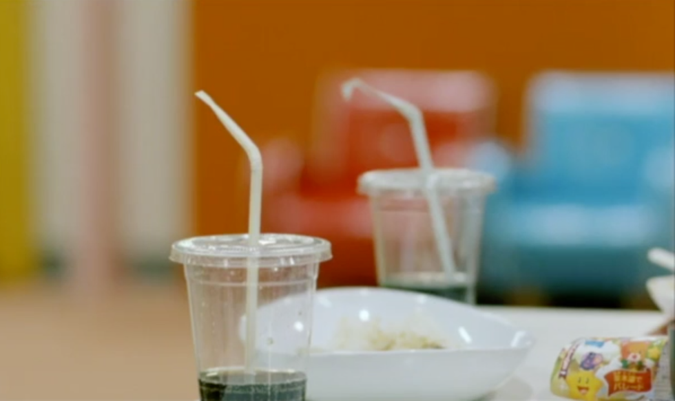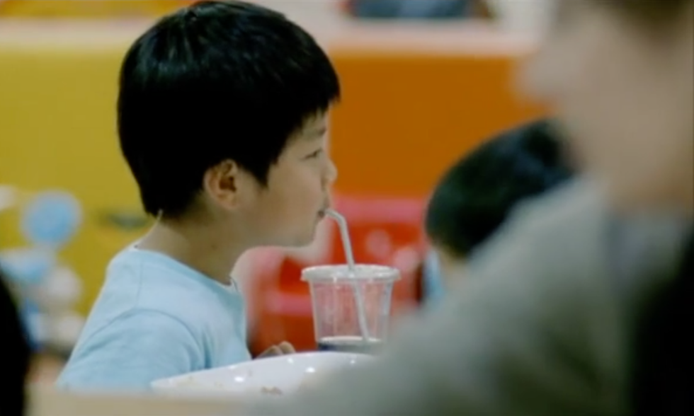 Our attention is once again brought back to Ryota’ gaze as the camera follows his eyes and train of thought. Following the rule of “show, don’t tell” the director subtly conveys the power of nurture over nature. We shift to a close up of the two plastic soda cups of Yudai and his son Ryusei, both with chewed straws. Like father like son.