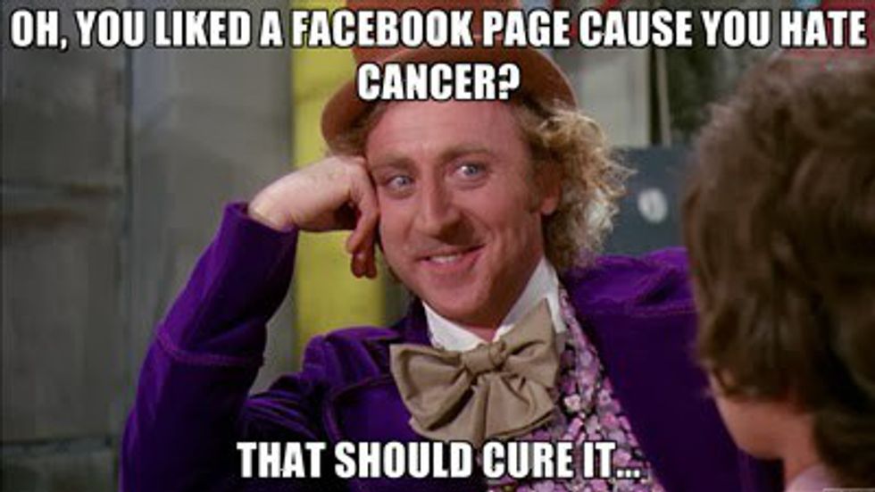 Now, I'm not saying drop all your worldly possessions and join the Peace Corps. Rather, I'm alerting certain individuals that their likes aren't buying hungry kids food or saving the dolphins or funding disaster relief.