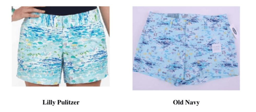 The resemblance is unquestionable. It is clear that Old Navy's intention was to sell a knockoff Lilly print for cheap. Old Navy definitely deserves to be sued for this. The hand painted prints made by Lilly designers are Lilly's property. The designers paint the prints on canvas originally before they are turned into clothes. Any Lilly fan would do almost anything for a hand painted canvas.