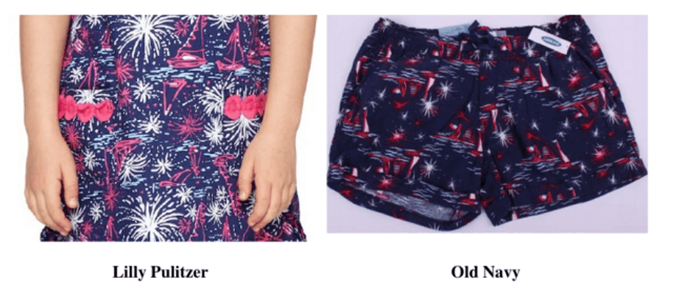 The prints in question are pictured below. The Lilly design is on the left and the Old Navy knock off is on the right.
