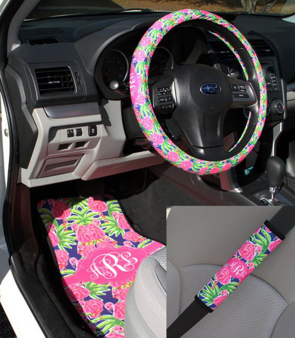 Protect your steering wheel and floors while looking super stylish with this accessory set.