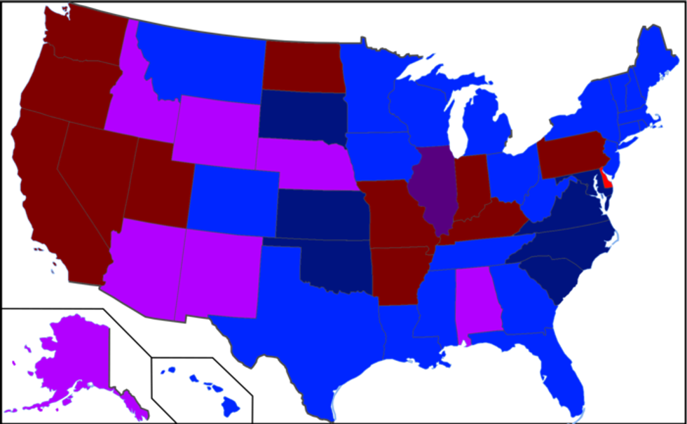 Keep in mind that Pennsylvania has always had stricter drinking laws than other states. The image below shows a map of drinking ages by state in the United States in 1975, which is around when most states were at their lowest age requirement for alcohol purchases. The maroon represents states that required a person be 21 or older to purchase alcohol.