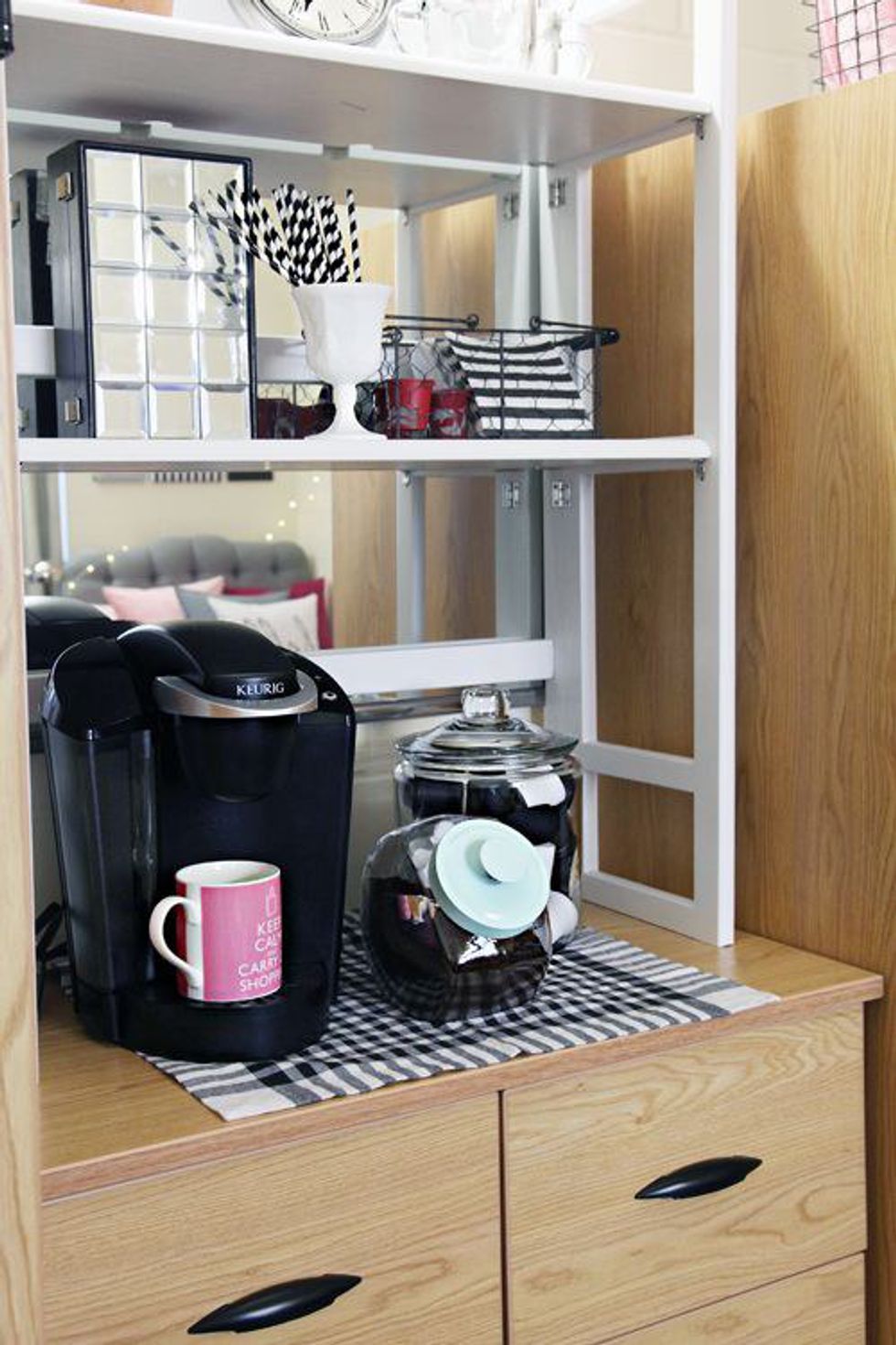 Coffee is your best friend in college. Sure, it’s nice to go out and get coffee somewhere, but sometimes in the morning you don't have time. You should also get some K-cup pods to make hot chocolate and tea. I recommend buying some paper hot cups so that you don't have to worry about washing mugs, because nobody has time for that.