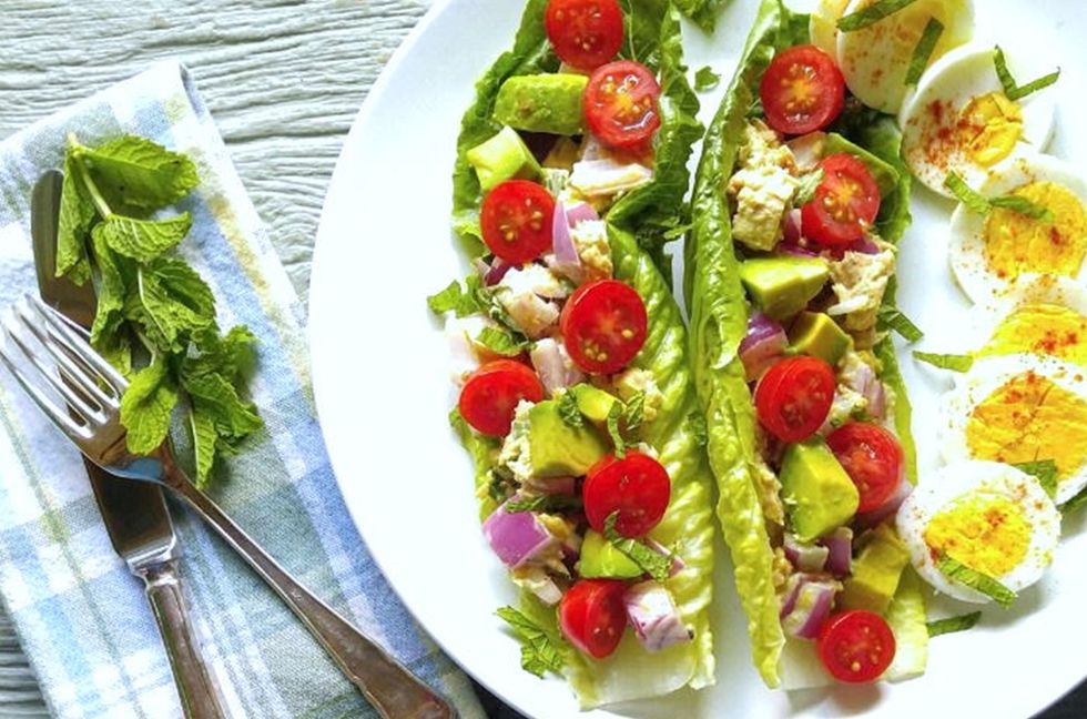 This just requires two cans of your choice of tuna, bits of lettuce leaves, a stalk of celery, cherry tomatoes, a hard boiled egg (for the side of course), lemon juice, salt, black pepper and a dash of red chili powder. After mixing this all, just add a dollop or 5 onto a leaf of lettuce and you've got yourself a light but filling lettuce wrap.