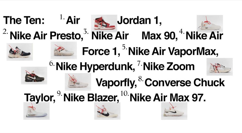 Nike released its collaboration with Off-White through 2017 and 2018. The whole collaboration is known as "The Ten."