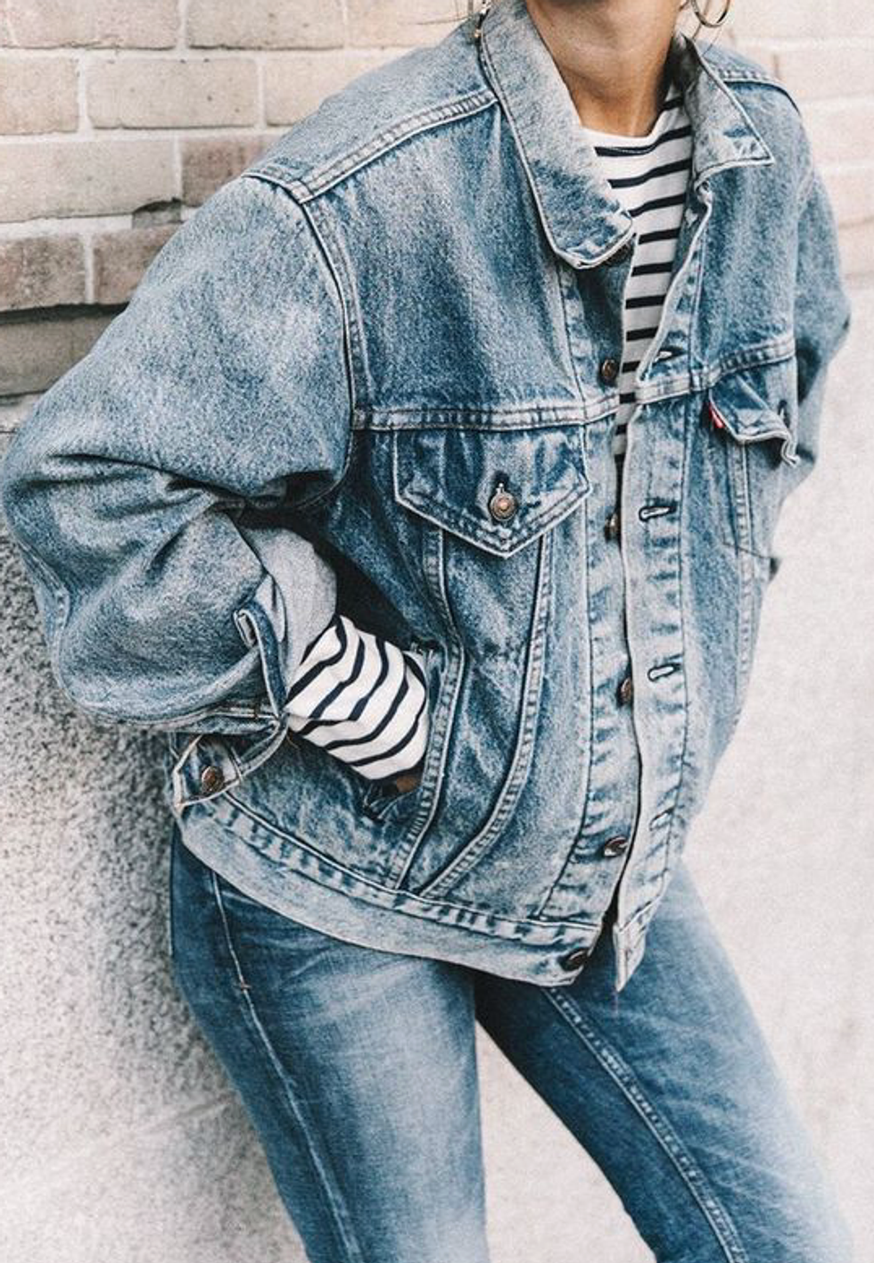 Reminiscent of the '90s (or perhaps directly descended from?), the denim on denim look can be difficult to pull off. While the celebrities might be rocking outfits in the same shade, I'd recommend having layers with different washes. It gives a more laid-back feel.