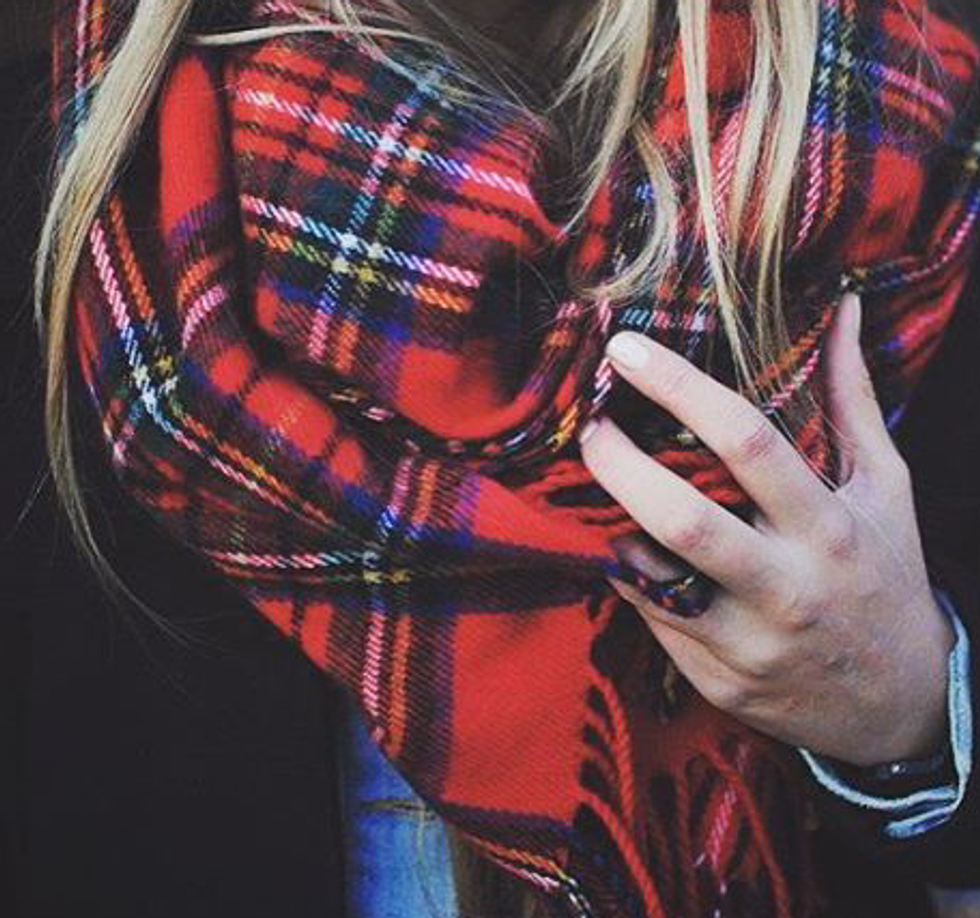 Don't worry. Infinity scarves are still in. You don't have to get rid of your hoard quite yet. However, the newer scarf look favors big, plaid scarves with ragged edges. Tie them loose to achieve maximum scarf-ness.