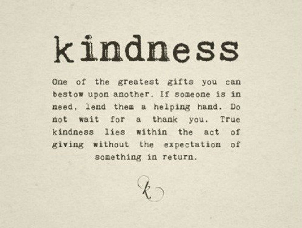 It seems like a silly thing to tell an adult to be kind and how kindness is important. Everyone has heard the saying to, "kill them with kindness," and that’s exactly what we should do all the time. We should put our best foot forward and start our day off saying thank you and being the best person we can be. Kindness is the basis of all human interactions. if you don’t have kindness in your actions it’s almost not worth it. No matter how urgent something may be, there is always time to put a please or a thank you after what ever might happen. If something bad is about to happen, by instinct we try to react as fast as possible but sometimes we just need to take a step back and act as if we care. Instead of yelling at someone not to do something, you can always just nicely tell him or her to do it a little bit differently.