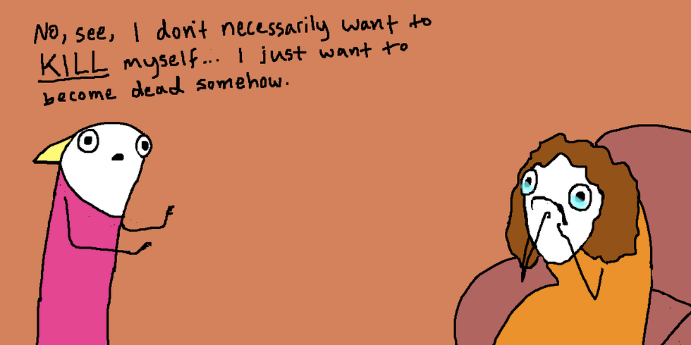There is nothing inherently bad about my life. Sometimes I feel like that one poem by Edwin Arlington Robinson. Richard Cory: the man with the perfect life with whom everyone is enamored. And then without warning he commits suicide. I would like to take a moment to express that I am not- nor have I ever been- actively suicidal. But I will confess to suicidal ideation: the idea that everything would be easier if I could just be dead. And that thought still crosses my mind whenever life starts getting tough. But it has gotten easier to deal with as time has passed.