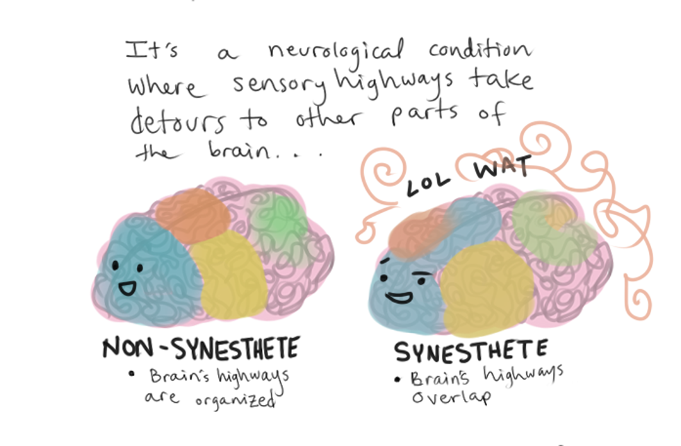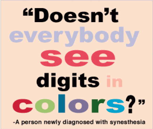 So what does this mean? Well, not too much, really. For a long while, the psychological community just called this condition an oddity, and never focused research on it. However, we are now finding that people with synesthesia may have slightly higher mental skills. For instance, people with grapheme-color synesthesia might be better in math, or memorizing long strings of numbers. People who associate sounds with colors tend to have much better pitch. For the most part, I find this to be true. I'm not going to say I'm great at math, but I am able to memorize extremely long strings of numbers with hardly any effort because of how the numbers "feel." Both my dad and another friend of mine are musicians and possess synethesia dealing with color and sound. This might be a rare case where having a neurological condition is actually helpful. Personally, I think having the added sense is fascinating, and I would never give it up.
