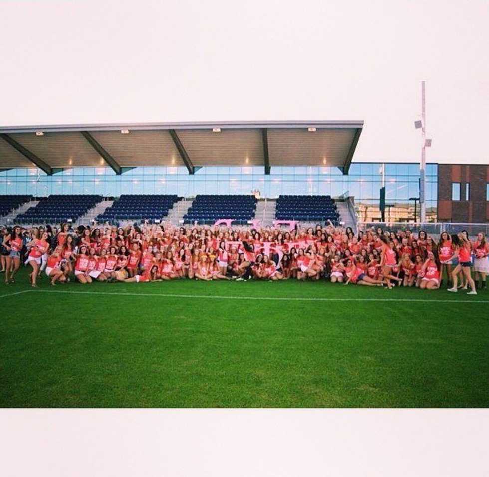 Bluntly putting it, recruitment is stressful, emotional, and you may even consider dropping as a result of trying to juggle new classes and a life outside of recruitment. However, I am not also saying that you won't meet the most amazing girls, strike up the best conversations, make friends along the way, and become closer with your sisters. Throughout recruitment sororities will go out of their way to smile their cheeks away and make the best connections possible with PNM'S (potential new members) in order for that sorority to maintain the best reputation possible on campus and also to get the best quality girls for their pledge class. Us girls go through about an entire week of singing songs until we can't sing anymore, setting up a beautiful chapter room to impress PNM's, and living off of coffee and support from your sisters during recruitment week.