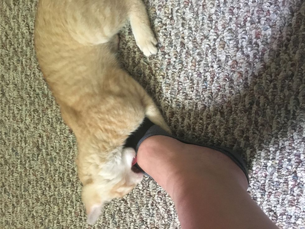 And, of course, to the cats getting dressed means its playtime because I’m moving around so much and clothes and flinging around. Clothes are obviously a plaything along with my poor, poor feet. I can’t even explain how many times my feet have been bitten, scratched, or played upon by all nine felines.