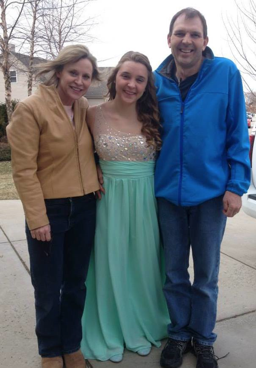 Here’s me before my senior prom. I only had an hour to get ready, because I had just flown home from a meet.