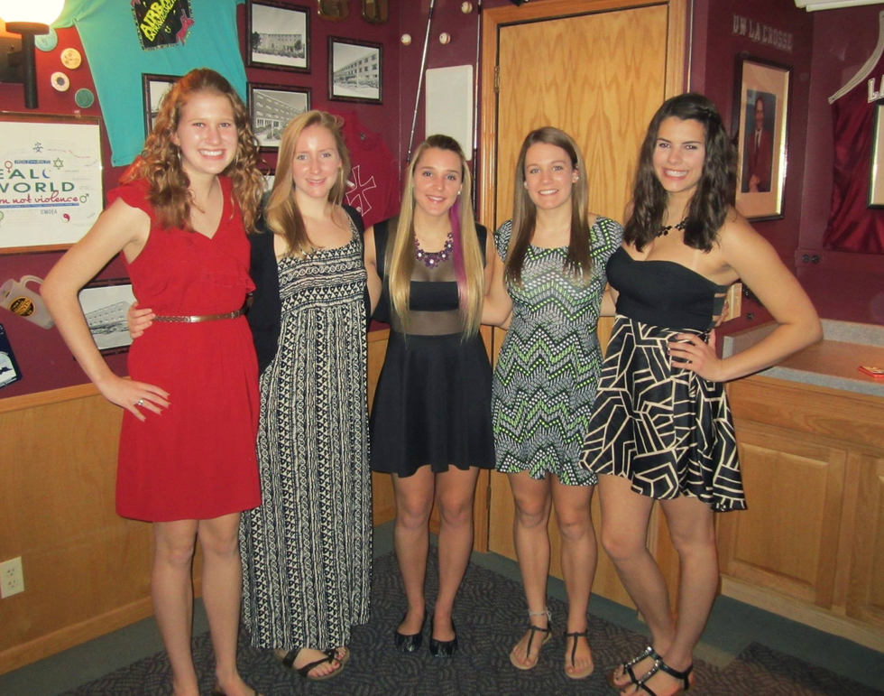Having dinner with some friends from my dorm freshman year - good news, I did make friends in college that like me, gymnast or not. I still live with most of these girls today!
