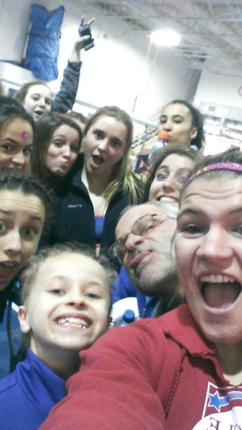 My teammates and I, being goofy with our coach after practice one day. These are some of my most cherished memories.