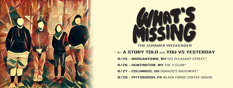 Because I know Zane Miller, the lead singer and guitarist from "What's Missing" from high school, I had the opportunity to talk to him about what band life is like. For starters, Miller said that their band is generally alternative rock. "We take much of our influence from a lot of pop punk, ego and indie rock artists." "What's Missing" members, Miller and Matt Herald, decided to start playing music again after their high school band fell apart and their friends, Aaron New and Molly Ranhart of Elkins, were down for starting a band. "The band has a loose plan to record a record of some sort in the near future. We have some songs written, but we still need to hash them out a bit more and make more solid plans to get into the studio," Miller said. He mentioned scheduling a few more weekend tours in the future as well. Three out of the four bands that played Thursday night are going on the tour with "What's Missing." The tour group started at 123 Pleasant Street in Morgantown, WV. Over the course of the weekend, the groups played in Huntington, WV, Columbus, OH, and Pittsburgh, PA.