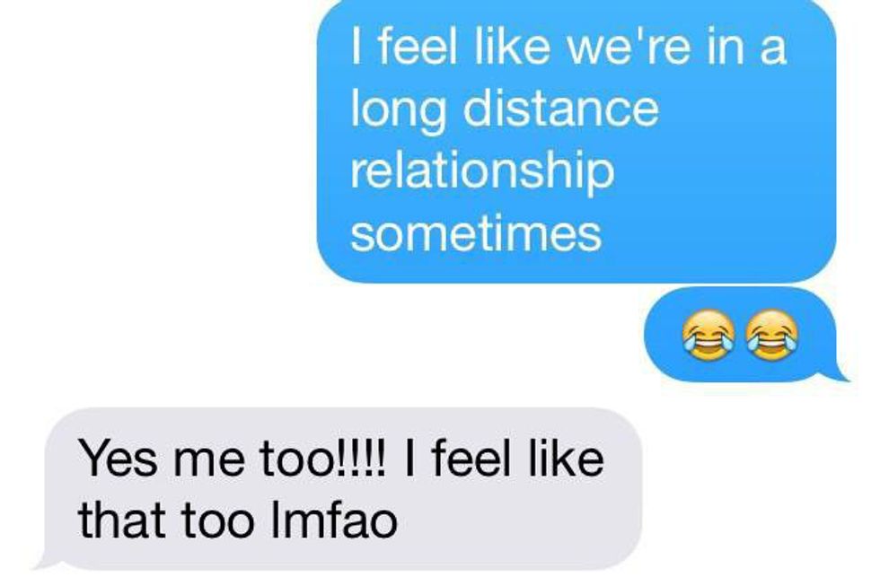 Being in a long-distance friendship is similar to a real relationship, except no passionate kissing, of course. You miss that friend like you would a significant other, and sometimes even text like you would to a significant other. I know that even if no one else wants to talk to me, my long-distance friend would love to chat so my inbox will never be empty.